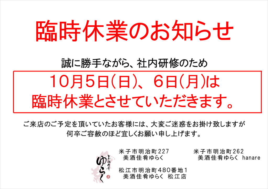さて誠に勝手ではございますが、社員研修に伴い下記日程を臨時休業とさせていただきます。